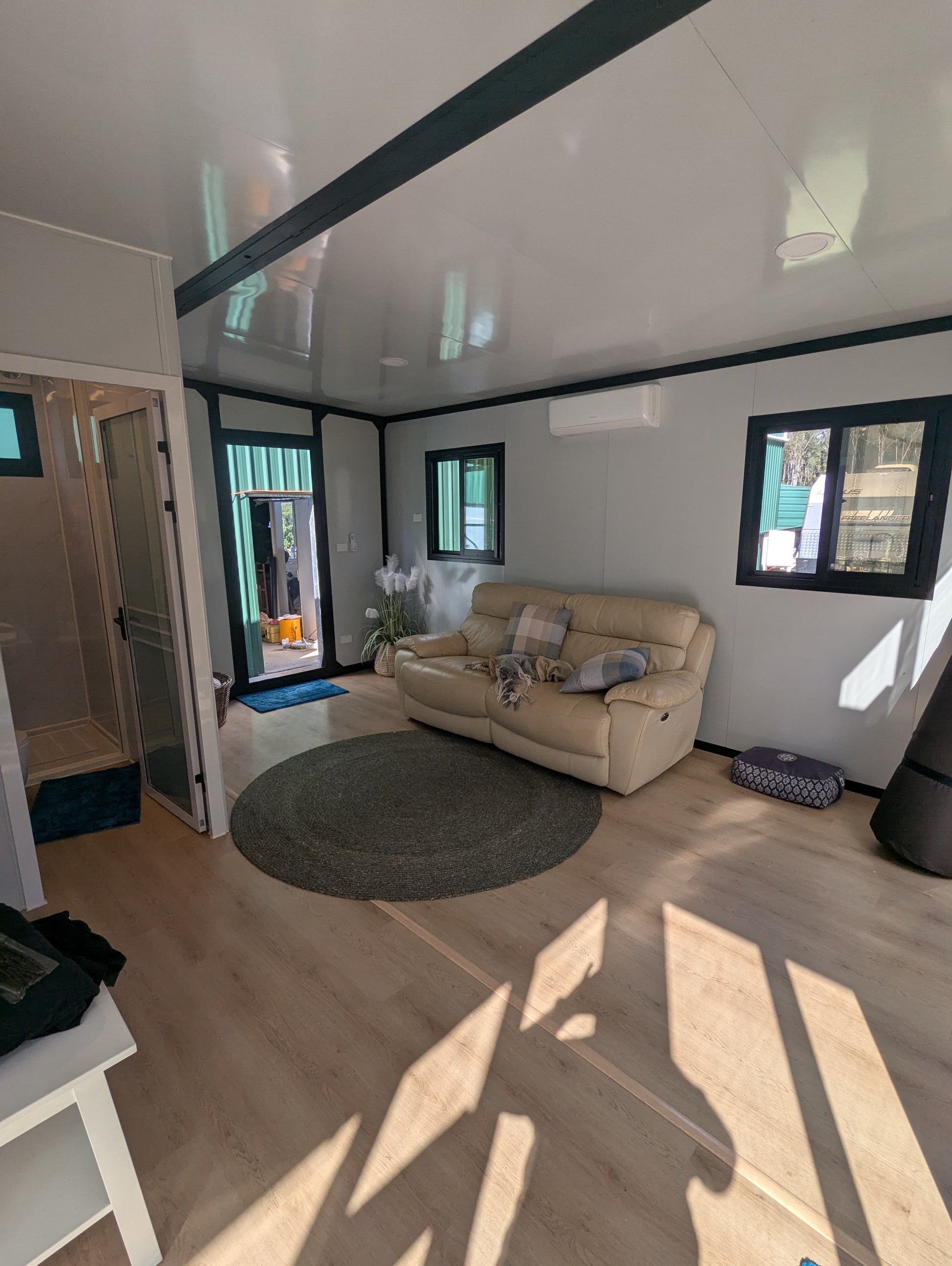 Durable 18mm fibre cement subfloor, corrugated steel roof, and infrastructure ready for solar, rainwater, or traditional services.