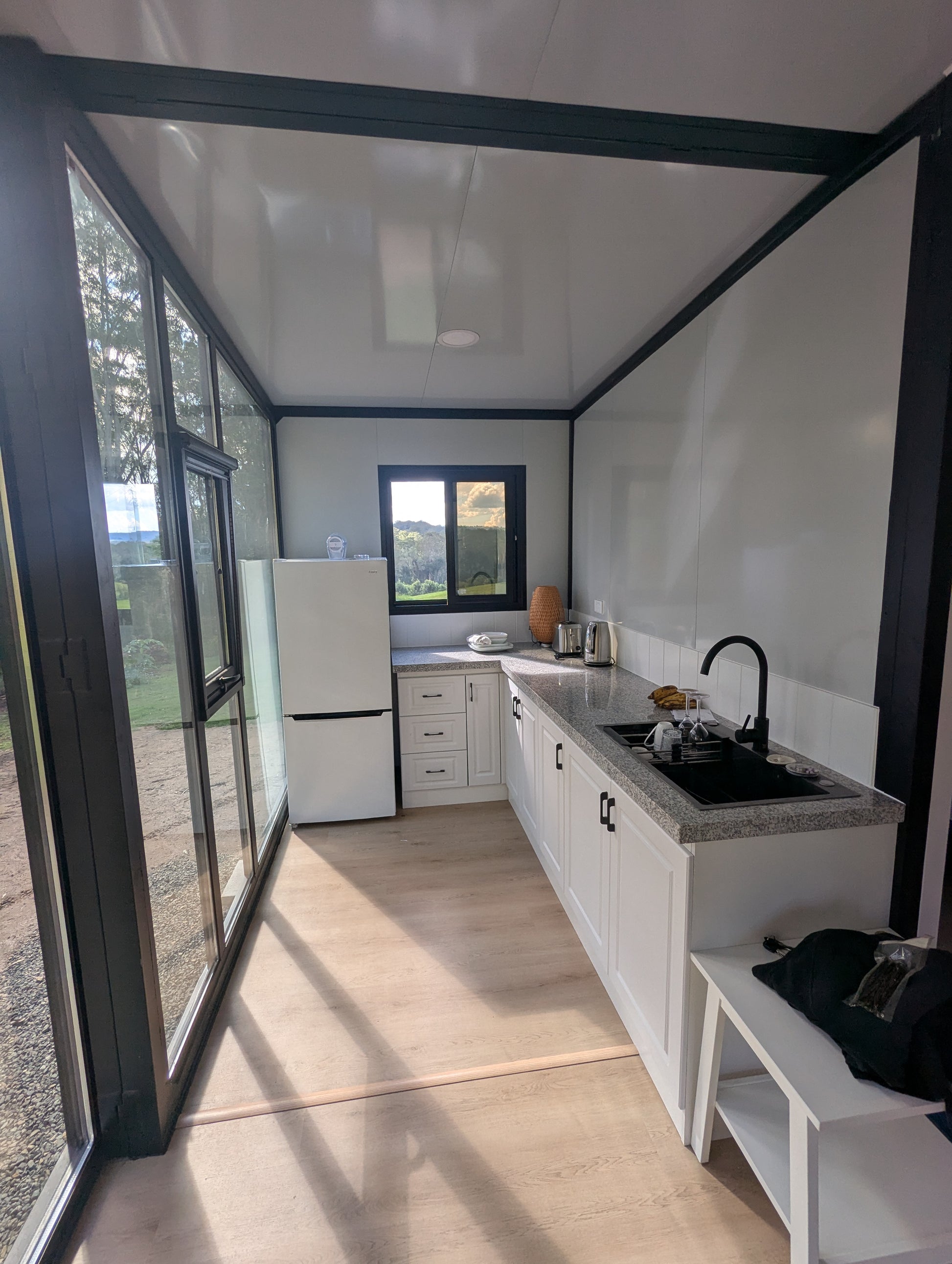 The Alto's raised ceiling design (2.45m–2.6m internal) meets the minimum ceiling height requirements for dwellings under the Building Code of Australia (BCA), offering an airy, comfortable interior unmatched by standard container homes.